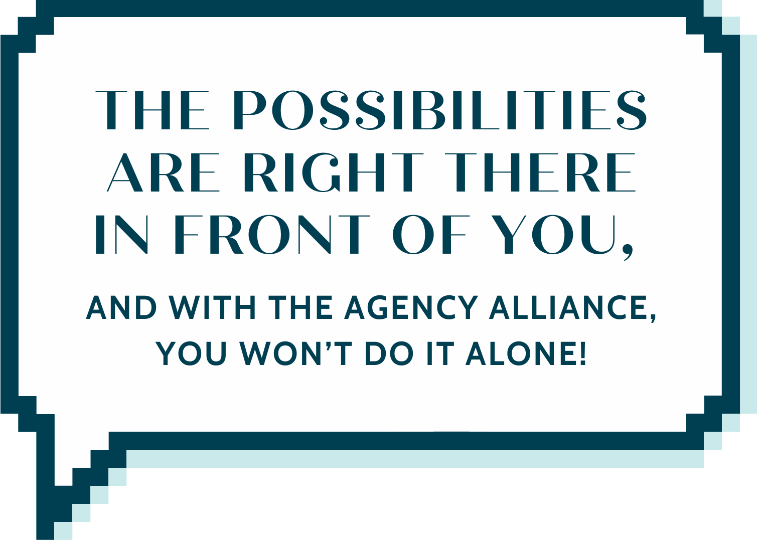 The Agency Alliance is the all-in-one agency support hub where you’ll receive a powerful combination of expert support, actionable courses, monthly marketing support, like-minded community, and a constantly updated treasure trove of proven resources to stay on track and experience your most profitable (and ease-filled) year yet!